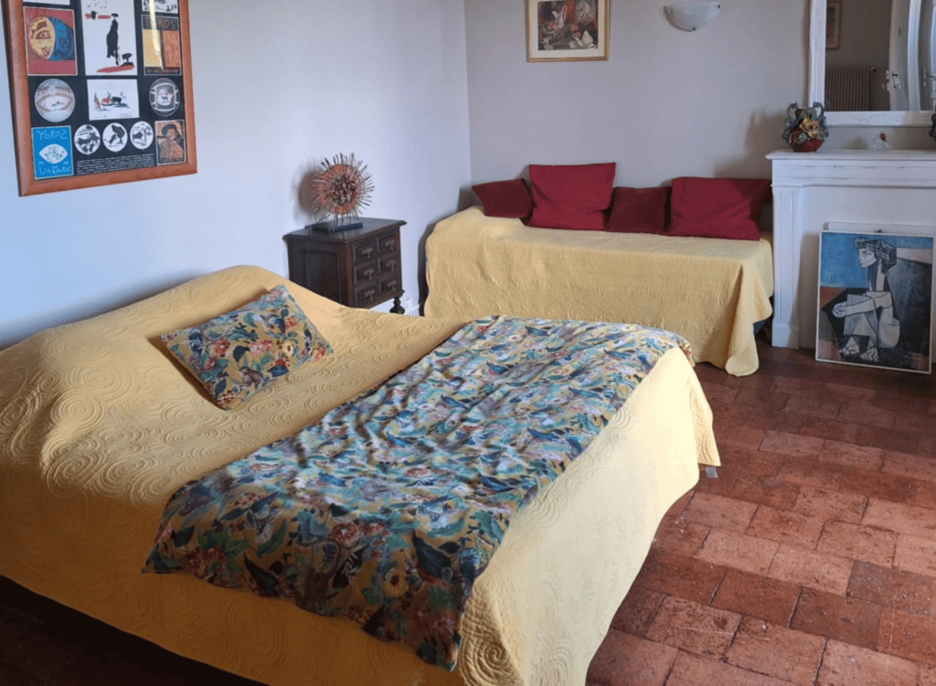 L’Atelier des Peintes: Chambre Picasso (1 lit double et 2 lits simples) – Chambre Lautrec (1 lit double, chambre PMR) – Chambre Matisse (1 lit double et 1 lit simple) – Chambre Klimt et Monet (double suite familiale 2 lits doubles et 3 lits simples)